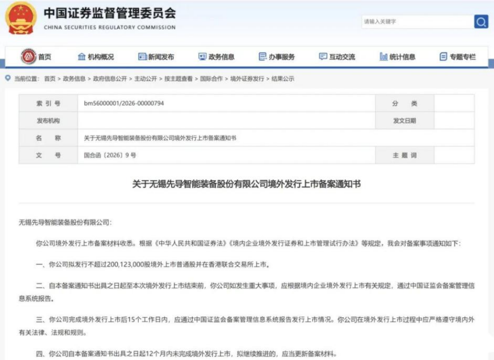 近日,无锡先导智能装备股份有限公司(以下简称“先导智能”),这家在登陆创业板(股票代码:300450.SZ)已多年的全球锂电智能装备巨头,获得证券会的境外发行上市备案,标志其港股上市进程再进一步 。