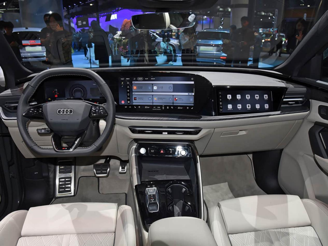 全新奥迪Q5L所使用的这套内饰并不陌生,和此前A5L相似,呈现三屏效果,包括11.9英寸的液晶仪表、14.5英寸中控屏以及10.9英寸副驾娱乐屏,再配合13.1英寸HUD以及电子挡把,带来不错的科技感。